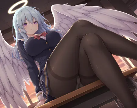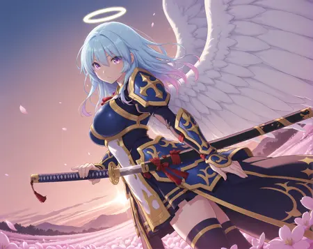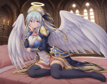 base outfit, armored dress, shoulder armor, angel wings, halo, hat,
