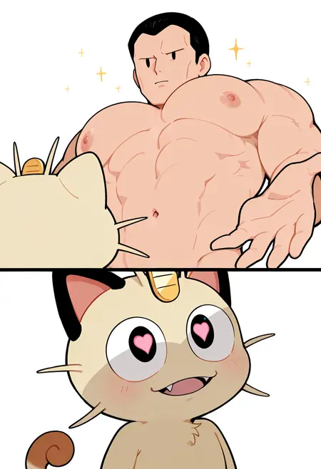 (Extra prompts to more closely replicate the actual meme. X navel can sometimes generate an x navel on the person in the 2nd panel instead of the 1st panel. Solid oval eyes and x navels should not appear without prompting, but place any in the negative prompts if you don't want to generate them)