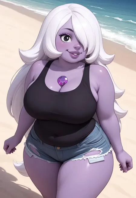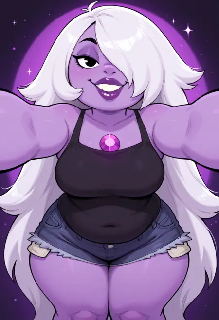 标签:amethystILL,白发,长发,极长发,黑眼睛,头发遮住一只眼睛,彩色皮肤,紫色皮肤,紫色胸宝石,丰满,健壮,