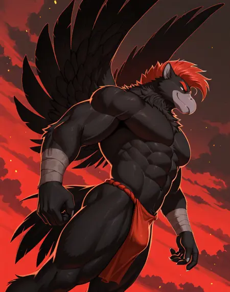 此LoRA的提示词为(Pazuzu, Mutant_Fighter, 肌肉发达, 鹰)。
