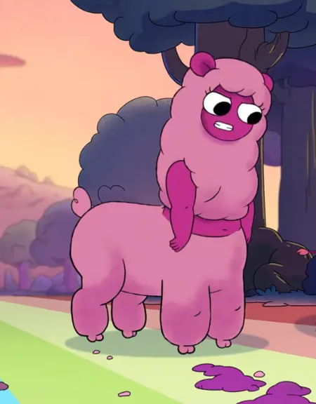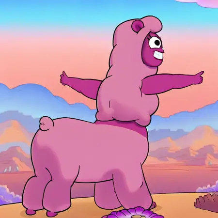 source_cartoon, 2d, 1girl, solo, llanma centaur, centaur, four legs, llama tail,