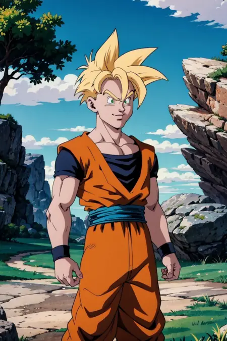 超级赛亚人的瞳色可以是 green, teal 或 blue,有时它们还是会混在一起。之所以没有一个主标签,而出现奇怪的标签,是因为我试图尽量减少变身之间的溢出,但遗憾的是仍然发生了。我最好的建议是使用权重来控制超级赛亚人2的头发。通常 (ssj:1.2) 就足以获得不错的头发效果,或者使用种子变异。普通的超级赛亚人则表现得很不稳定。