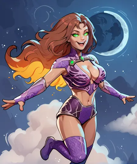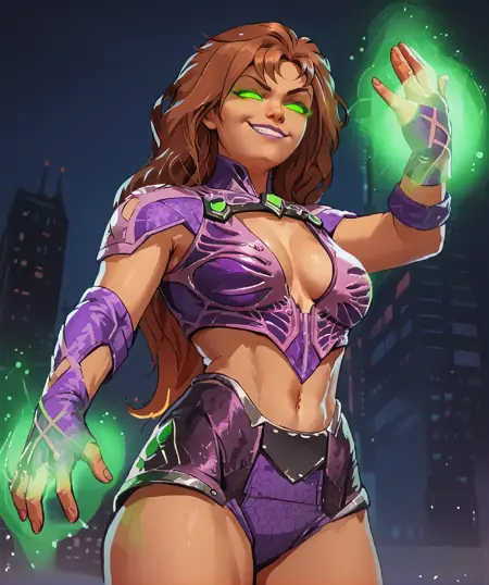 스타파이어, 녹색 눈, 빛나는 눈, 긴 갈색 머리 또는 주황색 머리,