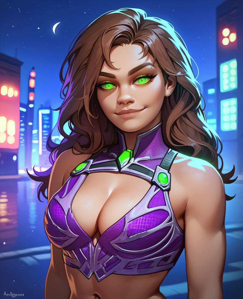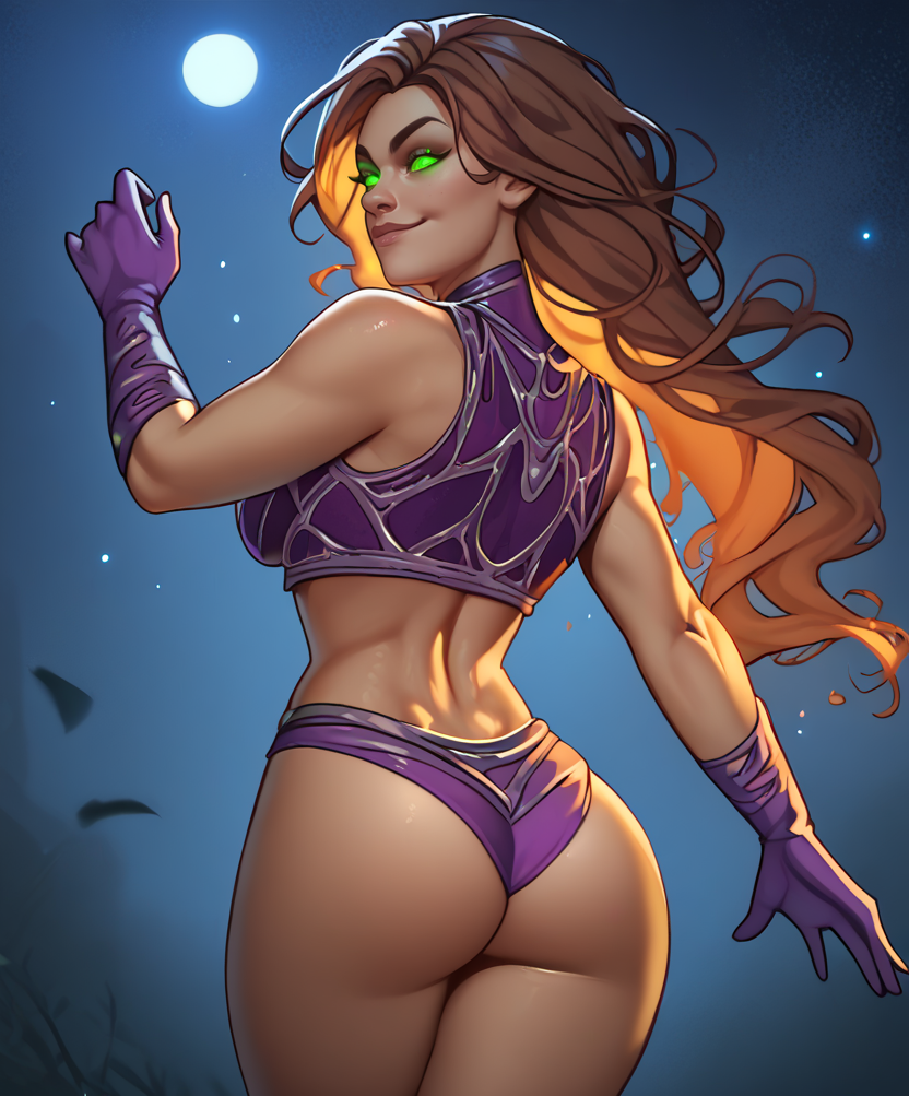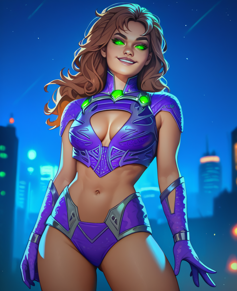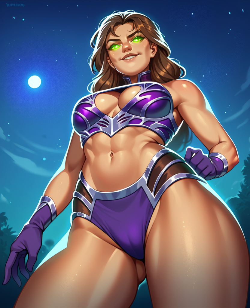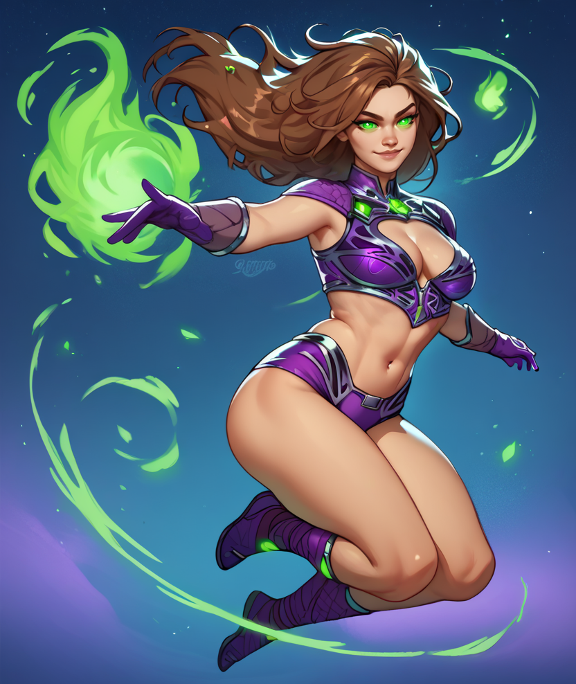 스타파이어, 녹색 눈, 빛나는 눈, 긴 갈색 머리 또는 주황색 머리,