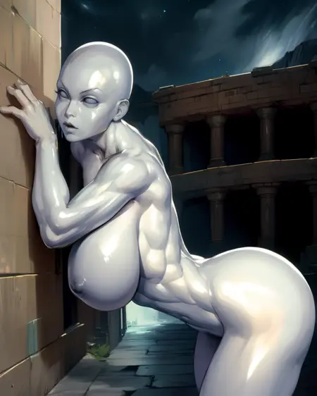 dural、秃头、白色眼睛、无瞳孔、铬金属身体、闪亮皮肤、银色皮肤、金属皮肤