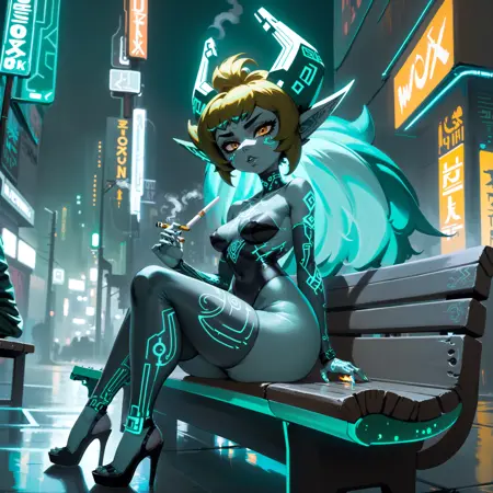 由于训练数据的多样性,若提示不够具体,可能会出现特征混搭的情况。另外,若使用Midna小妖精,可能需要在正向或反向提示中加入“头盔”,具体取决于你想要的效果。