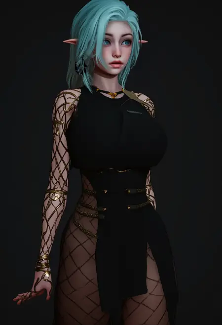 프롬프트: Penelope(Eternum), Penelope Carter (Eternum), 8K 해상도의 걸작, 초현실적인 3D 렌더링, 극도로 아름다운 초상화, 1girl, 가슴, solo, 긴 머리, 금발, 보석, 초커, 녹색 눈, 치마, 시선을 직접 바라봄, 젖꼭지 노출, 흰 셔츠 리얼리스틱, 목걸이, 큰 가슴, 어깨 노출, 입술, 크롭탑, 벌어진 입술, 복부, Eternum