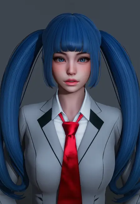 프롬프트: 8K 해상도의 걸작, 초현실적인 3D 렌더링, Eva(Eternum), Eva (Eternum), 1girl, solo, 파란 머리, 파란 눈, 트윈테일, 짧은 앞머리, 드릴 머리, 긴 머리, 학교 근무복, Eternum
