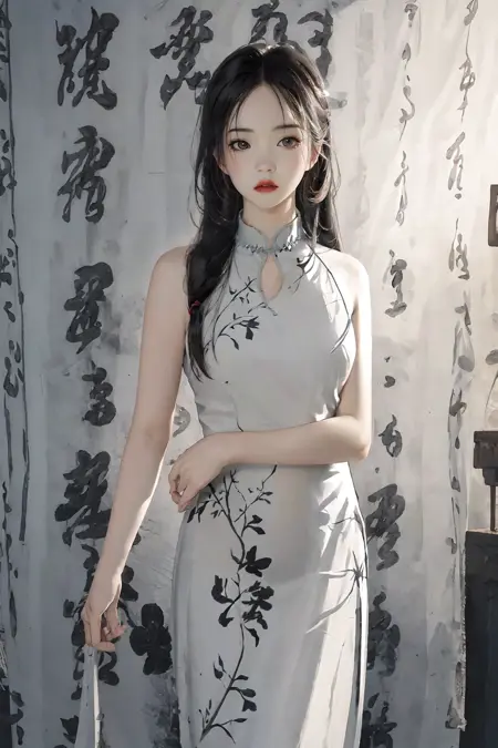 一款搭配书法背景的新中式黑白旗袍lora,场景虽不丰富,但对各大模型的适配性良好。