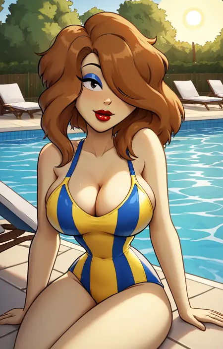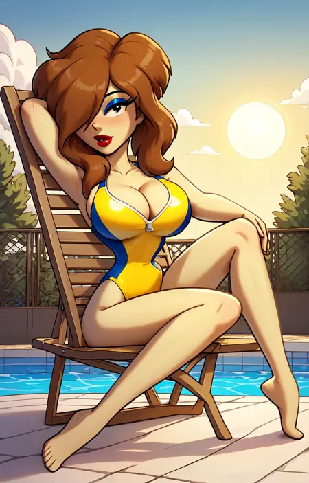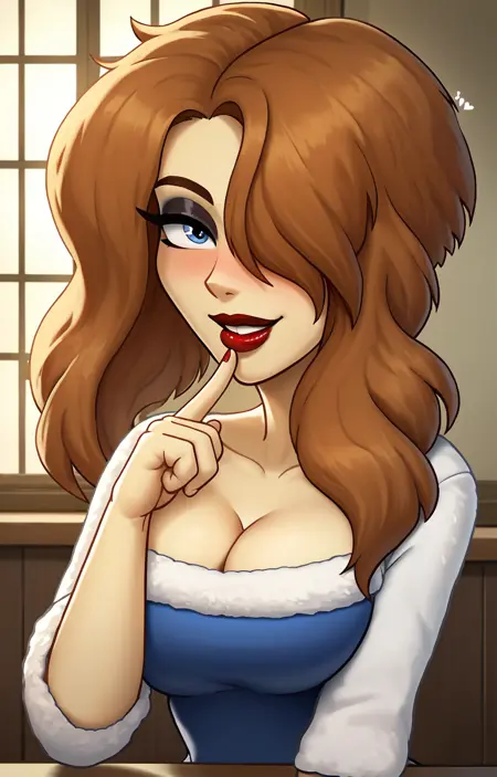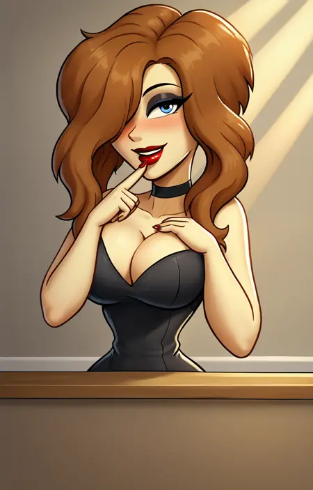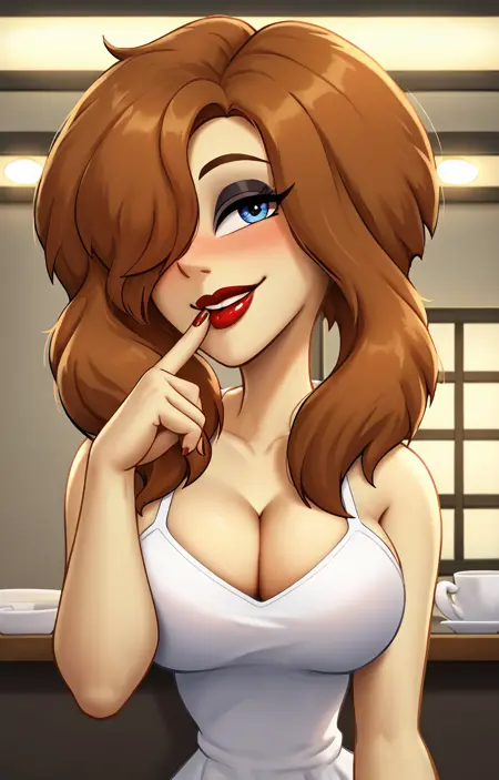 bay, huge breasts, narrow waist, brown hair, bays_hair,