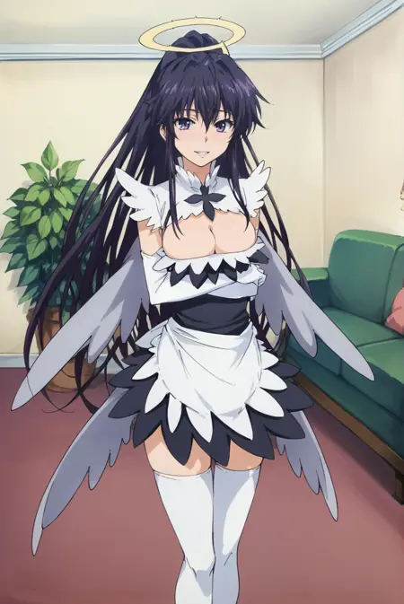 outfit_3,短裙,光环,可拆卸衣领,露胸,羽毛翅膀,白色手套,肘部手套,腰围围裙,黑色裙子,绝对领域,白色过膝袜,