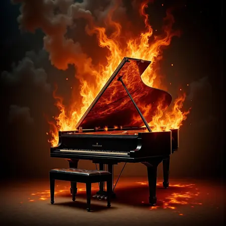 Describe what is burning in your prompt. If you do not mention any keywords you will often get glowing stuff. Burning letters can be quite an eye-catch.