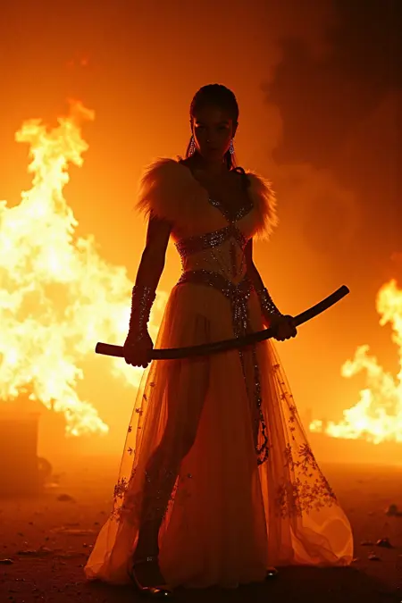 プロンプトで何が燃えているかを明確に説明してください。キーワードを記述しないと、しばしば輝くものばかりが生成されます。燃える文字は非常に目を引きます。