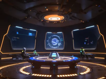 宇宙カプセルのトリガー語:宇宙船のコクピット、SFテーマ