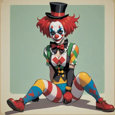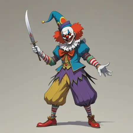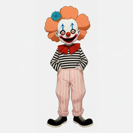 이 모델은 어떤 장르의 캐릭터라도 생성할 수 있지만, 특히 서커스 클라운 모티프를 포함한 캐릭터 생성에 가장 뛰어납니다.