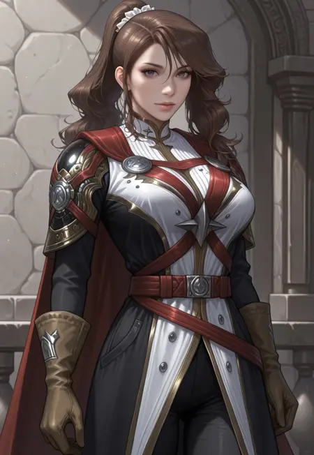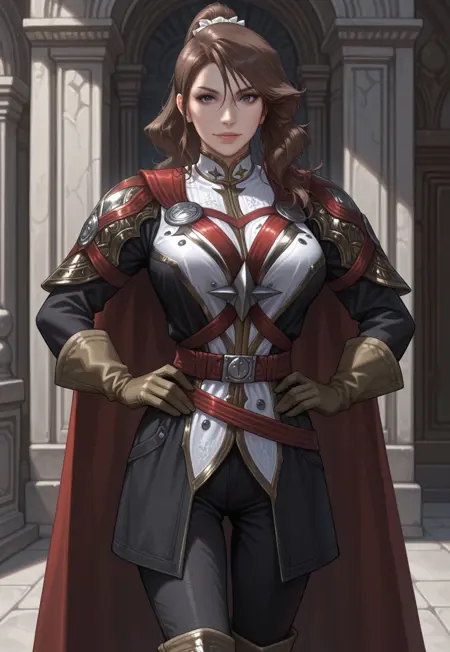 《最终幻想0》中的艾米娜·花春。一位风趣开朗的指挥官,深受学生喜爱。但有些人认为她隐藏着什么……