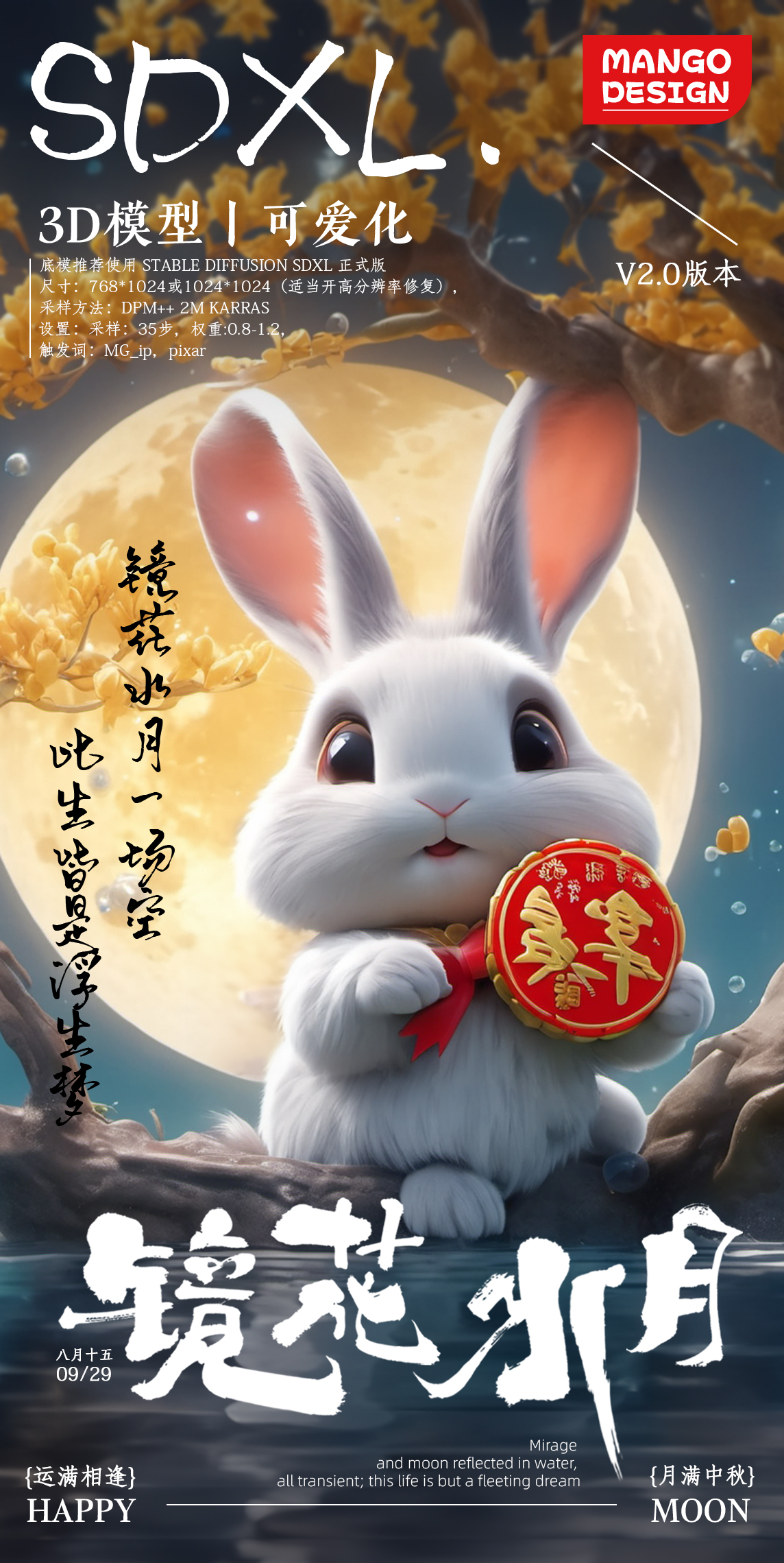 基于SDXL训练的3D模型风格与皮克斯风格相似,但角色更偏向盲盒风格。除角色外,还可生成动物、物品等元素,绘画概率更加稳定。更多玩法可自行探索。