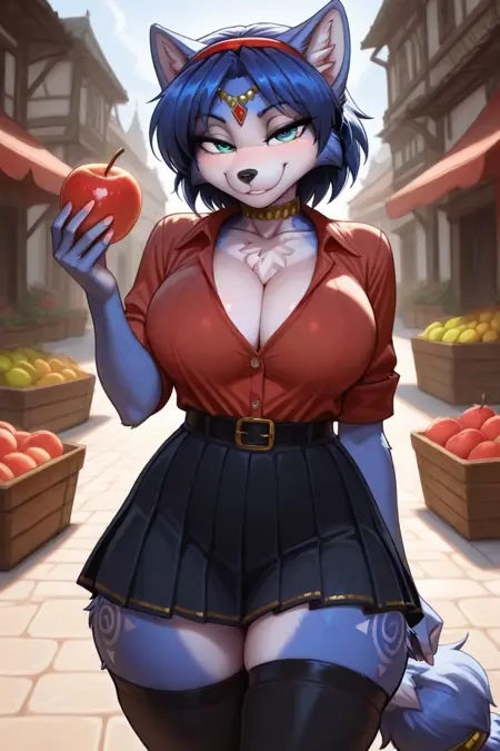 1girl,krystal,blue fur, Emerald green eyes,tribal tattoo,white markings,large Breast