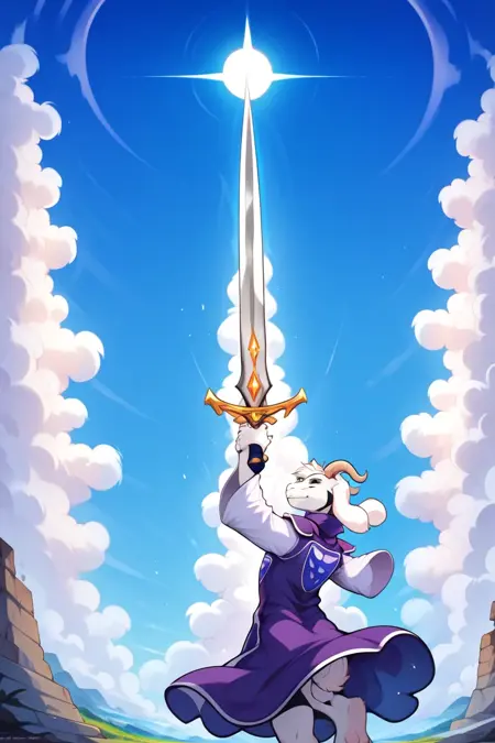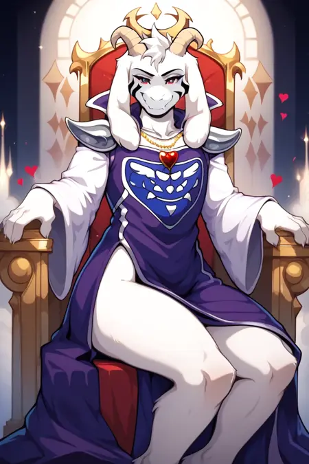 Asriel,goat,goat ears,furry,goat horns,animal ears,black sclera,colored sclera,facial markings,body markings,fluffy neck fur