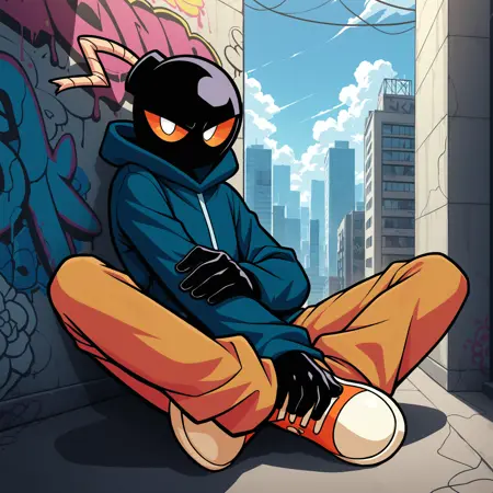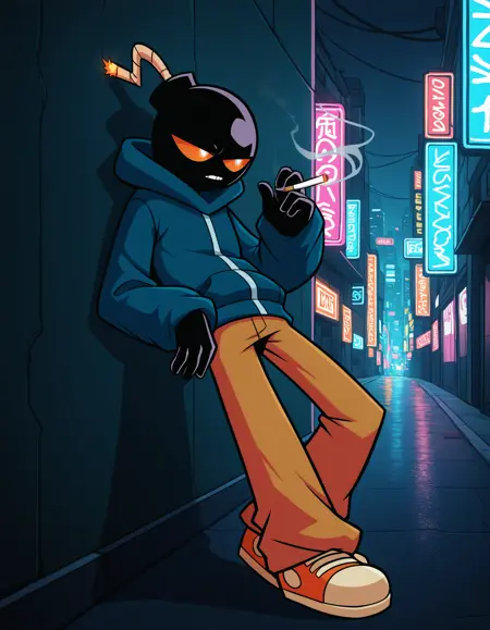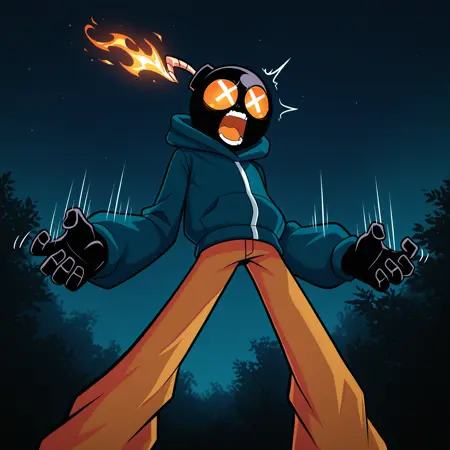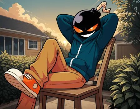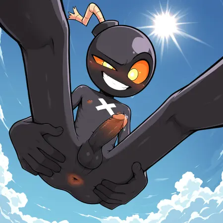 Optional Tags: teeth, x on chest, yellow eyes, cross pupils, lit fuse