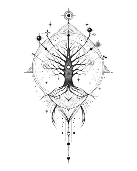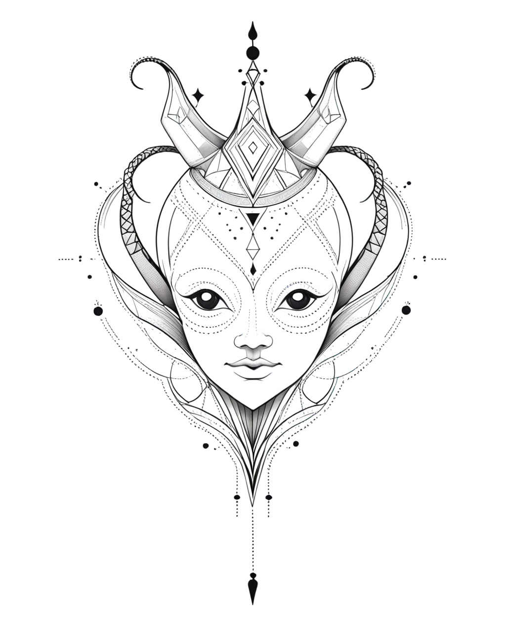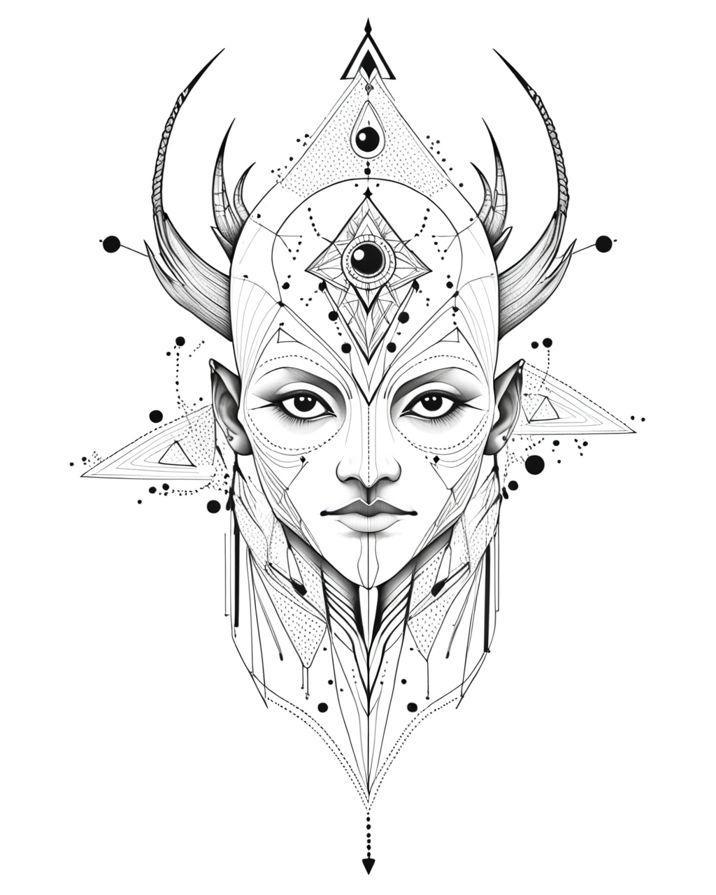 minimal geometric lineart tattoo sketch, can also add some outline effect