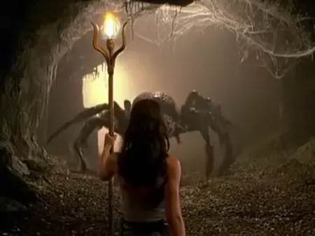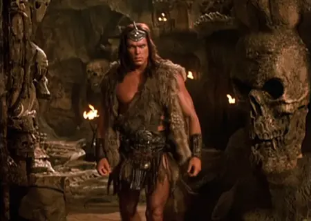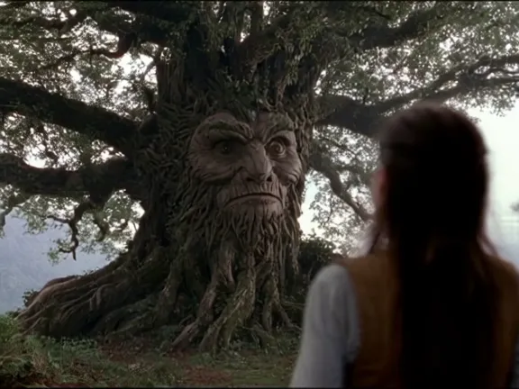 "수많은 옷을 입은 인물들, 아마도 마법사나 소서러들의 회의체가 원형 돌 테이블 중앙에 빛나는 분홍색 결정 주위에 서 있다. 결정은 마법적인 기운을 발산하며, 인물들은 주술을 논의하거나 시전하는 듯하다. 배경은 어두운 동굴 내부로, 돌로 된 벽과 다양한 물건이 놓인 벽공이 있으며, 특히 큰 골격 생물이 있다. 이 장면은 마법적이거나 고대의 폐허를 시사한다."