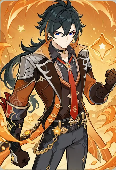 outline, granulated, thick outline, pointillism, genius, invokation, genshin, impact, card, foreshortening, symbol, dynamic lines, angular lines, energy flow, simple shapes, intrincated details, (COLOR) theme