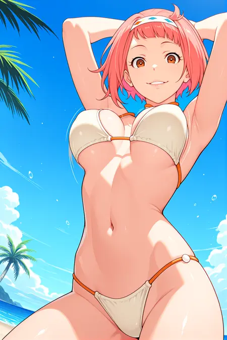 기본 프롬프트: n1n4, 단발, 분홍색 머리, 헤어밴드, 갈색 눈,