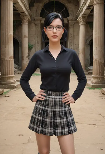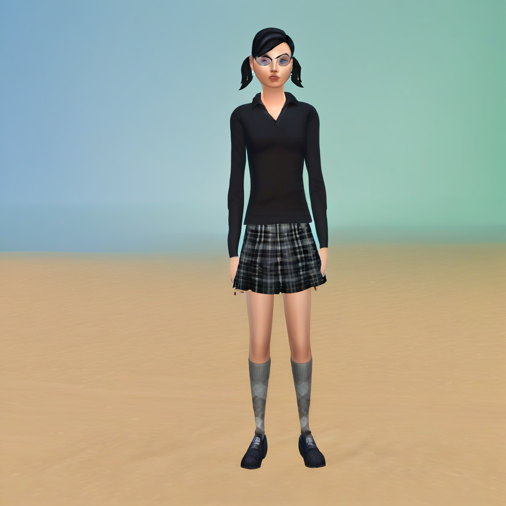 sims4cassandragoth, 1girl, black hair, short twintails, twintails, short hair, small breasts