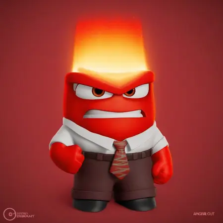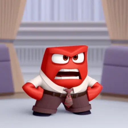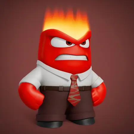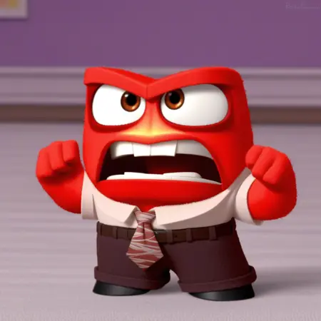 Anger_InsideOut red skin, white shirt, brown pants, tie, solo, intricate iris
