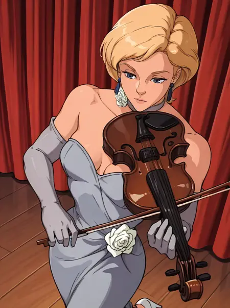 [可选] 优雅正式礼服的额外触发词:吊袜带枪套、手持小提琴、演奏小提琴