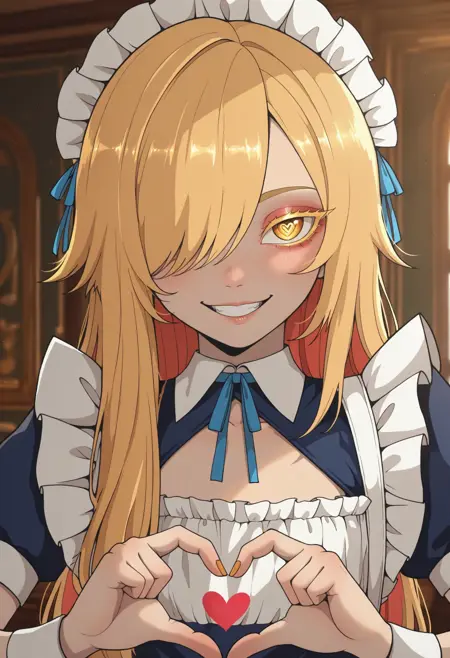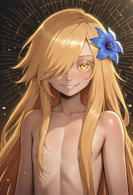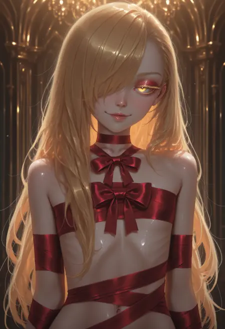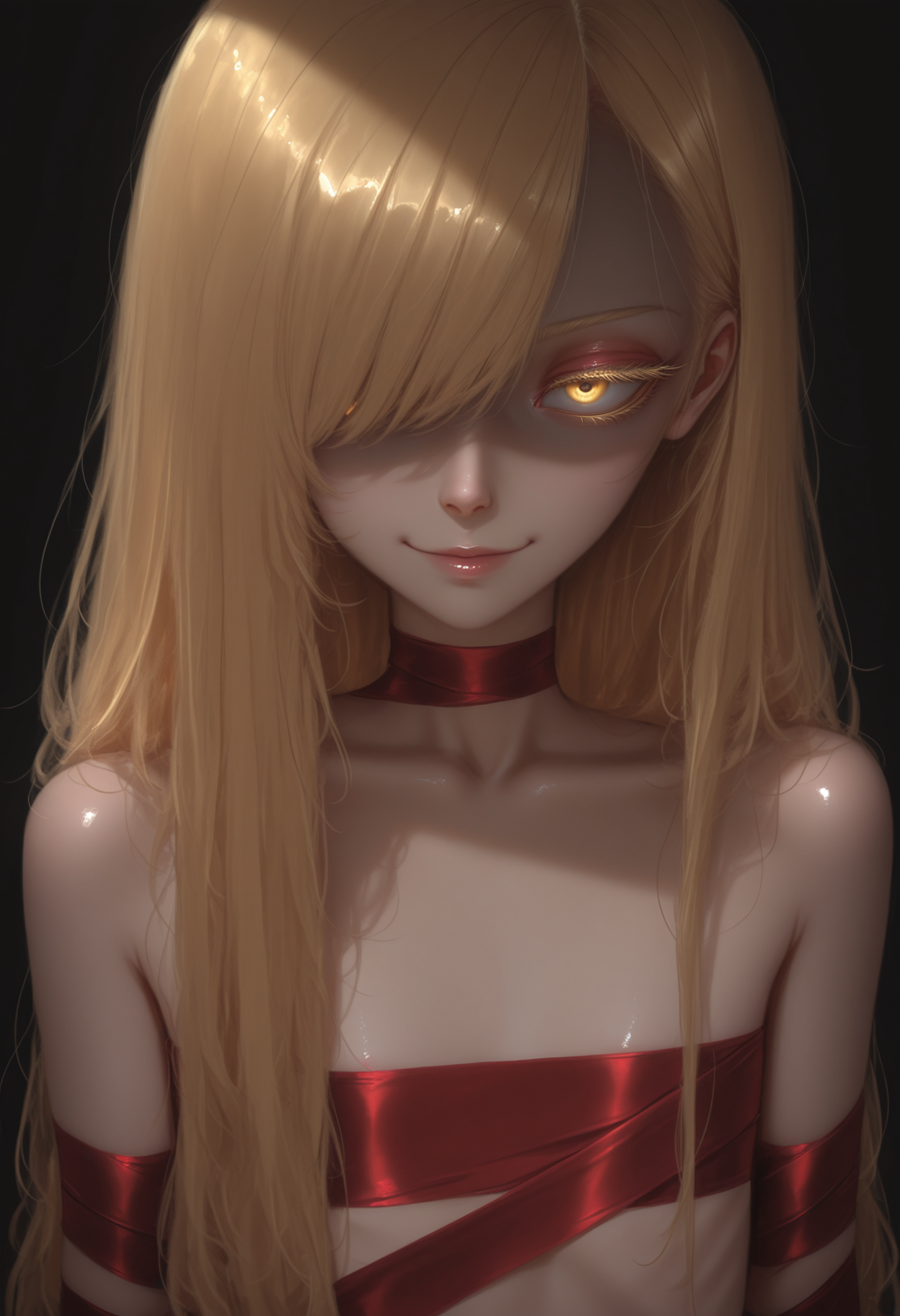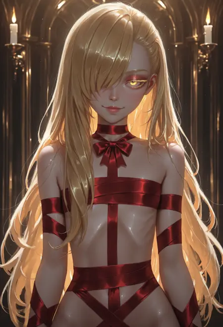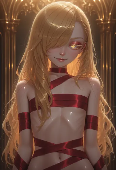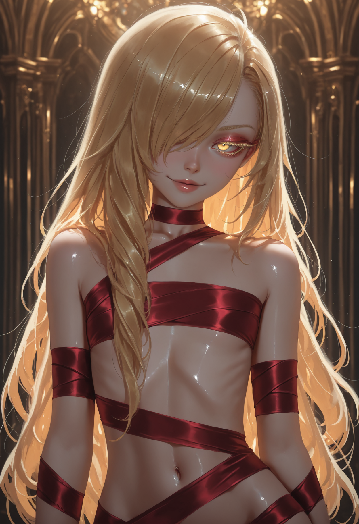 - otoko no ko,平胸,金黄色长发,不对称发型,金色睫毛,头发遮住一只眼睛,金色眼睛
