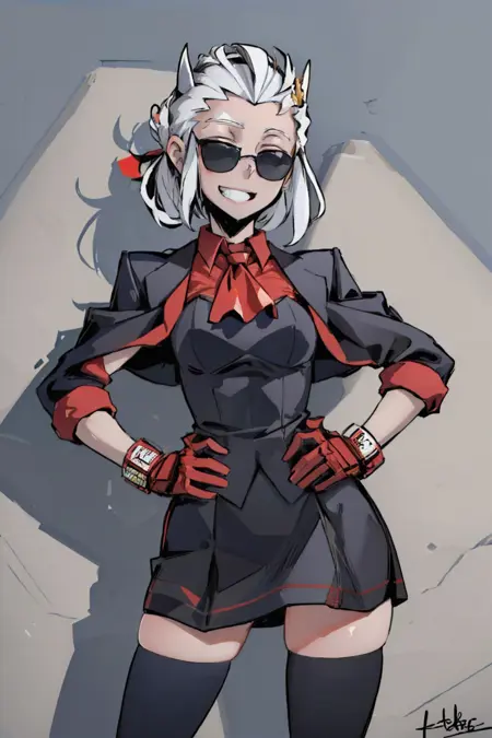 触发词 + 额外标签: htmaid, red ascot, thighhighs