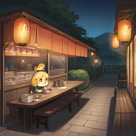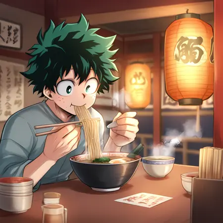 Additional: restaurant, indoors, table, lantern, steam, paper lanterns, ramen,bowl, chopsticks