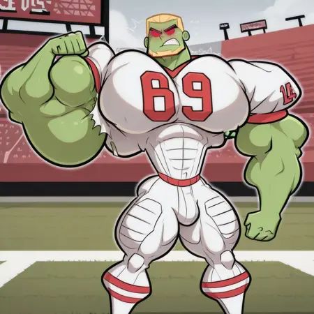 버전 2, 더 나은 눈으로 개선됨.샘플 프롬프트에는 다음이 포함됩니다:Dash, 파란 눈, 금발, 짧고 각진 머리,빨간색과 흰색 letterman 자켓, 검은색 안티, 파란색 바지풋볼 유니폼, 과장된 근육,턱 수염