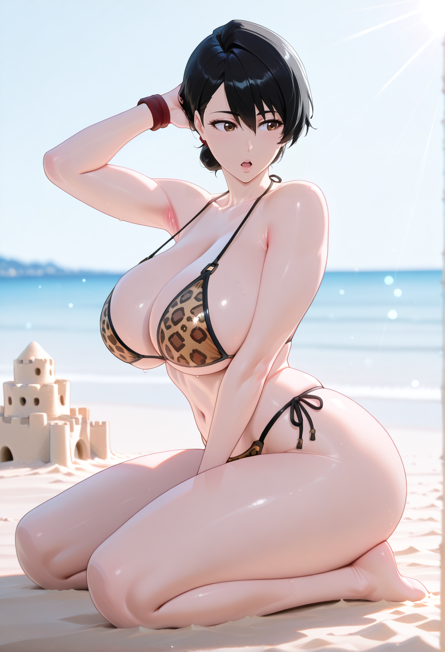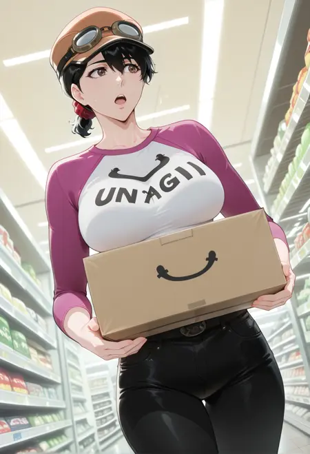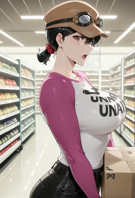 外見: ikumiunagiya、黒髪、茶色の目、成熟した女性、レッドクランチー、短いポニーテール