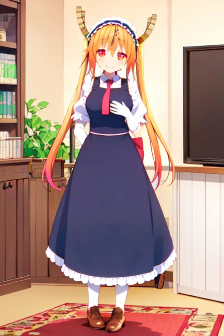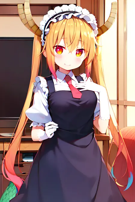 This is a 1.5 Lora, created by 50 high quality images, with the character Tohru from the anime Kobayashi-san Chi no Maid Dragon.