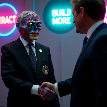 使用触发词“7h3yl1v3”激活你的视觉,见证世界在你眼前悄然转变。目睹电影中直出的电影场景、模糊人类与外星人界限的诡异cosplay画面,以及以鲜明黑白呈现、高呼“服从”与“消费”的插画。