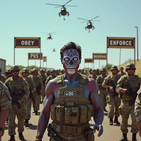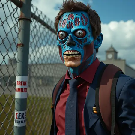 踏入约翰·卡朋特的《他们活着》世界,体验这款令人脑洞大开的“TheyLive Style | Flux.1 D”模型!就像罗迪·派珀标志性的墨镜一样,这个LoRA模型撕开了现实的面纱,揭露了潜藏于表象之下的隐秘真相。