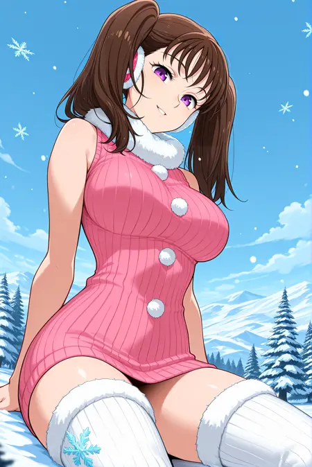 핑크 스웨터 드레스: 핑크, 드레스, 모피 트림, 터틀넥, 스웨터 드레스, 소매 없음, 홈짜기 스웨터, 모피 다리창, 흰색 허벅지 긴 양말,