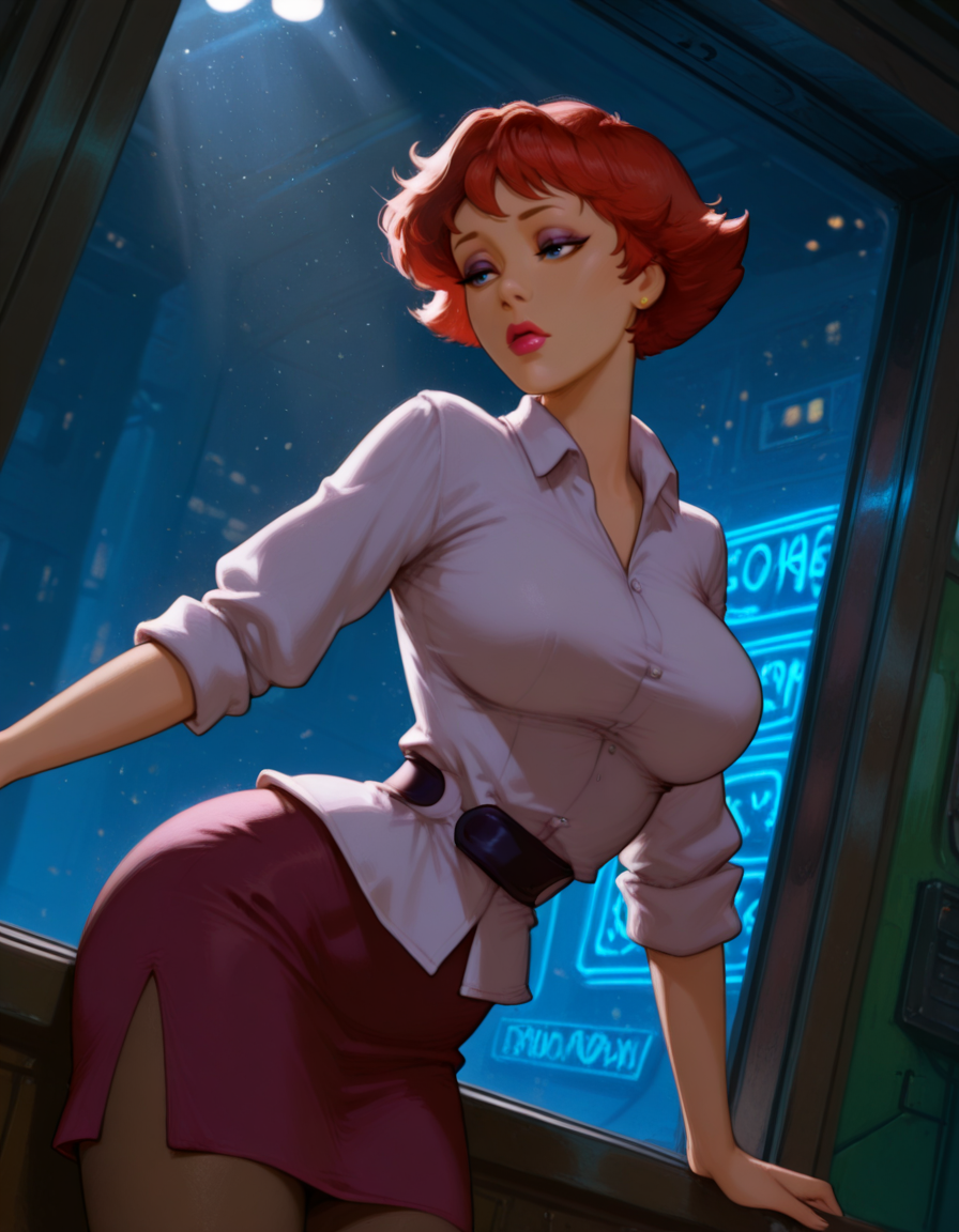 헤이오오, 이걸 로드하고 준비해두었던 걸 잊고 있었어. 단지 그녀를 훈련시키기만 하면 됐지. 기억을 떠올려줘서 고마워! 그녀의 옷은 간단하고 반응도 잘 해서, 영화의 스타일과 얼굴 특징 일부를 유지했어 :) 원한다면 스타일을 더 강조하기 위해 가중치를 높여도 돼. 즐겁게 사용해!