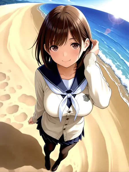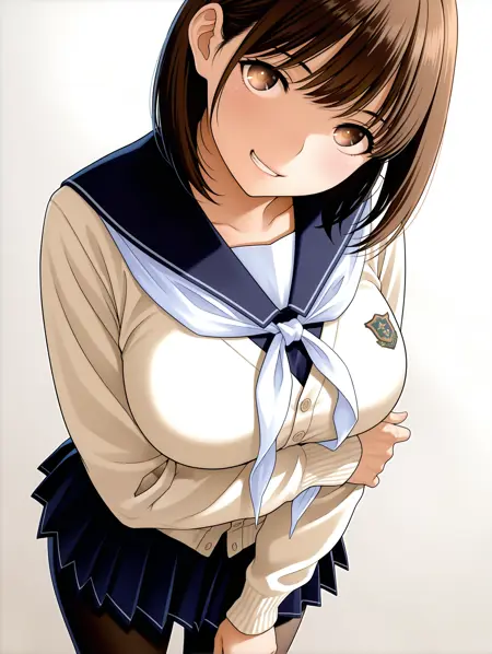服装词(开衫) ・n_c_clothes,milky white cardigan,neckerchief,pleated skirt,black_pantyhose,loafers,