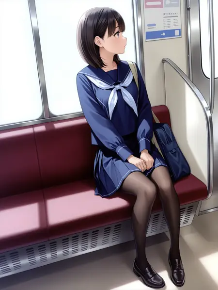 服装词(冬装) ・n_b_clothes,long_sleeves,blue serafuku,neckerchief,pleated skirt,black_pantyhose,loafers,