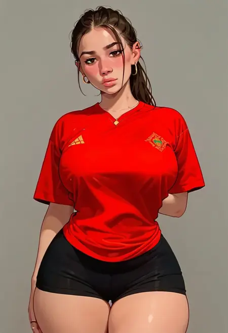 컨셉 트리거: footballshirt, [color] footballshirt, tinyshorts, [color] tinyshorts, tightshorts, [color] tightshorts,