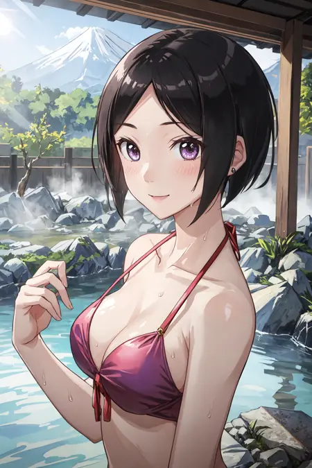 Other prompt words: ear covered, alternative haircut, purple eyes, earrings