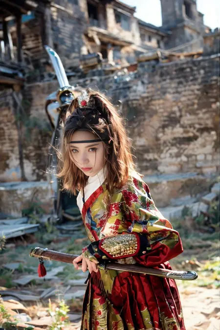 底模依旧是麦橘大佬的V6,图片大小512*768,权重在0.7--1之间。正面提示词;blurry, depth_of_field, 1girl, blurry_background, solo, sword, weapon, blurry_foreground, jewelry,(Ultra-realistic 8k CG: 1.2), perfect artwork, exquisite patterns, intricate details, (unparalleled masterpiece, best quality: 1.2), (extremely complex: 1.2),
