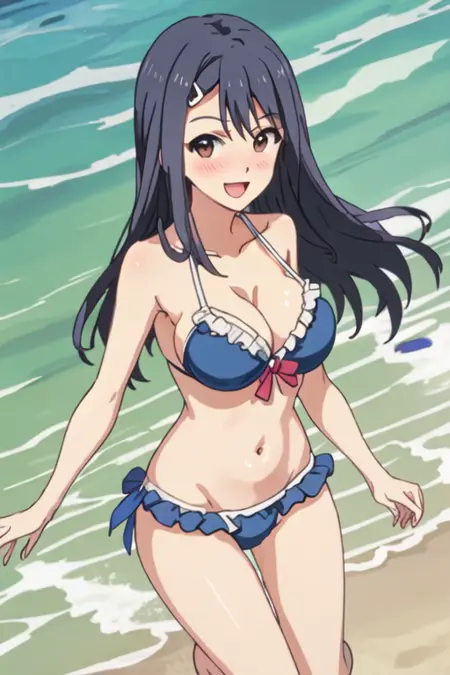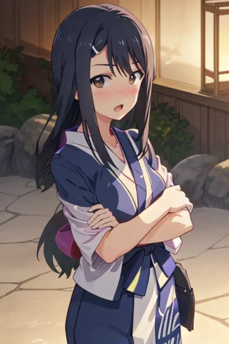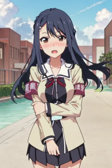 The trigger word is public_morals_chairman_ahogirl, and the recommended tags are best quality, masterpiece, highres, solo, {public_morals_chairman_ahogirl:1.15}, long_hair, hair_ornament, hairclip, blue_hair, blush, brown_eyes, open_mouth, black_hair.