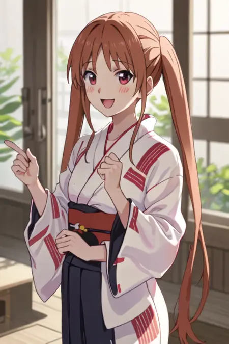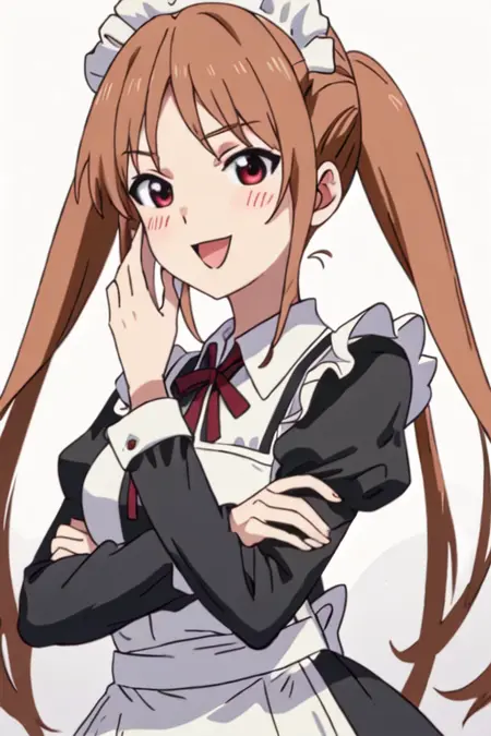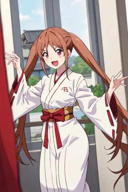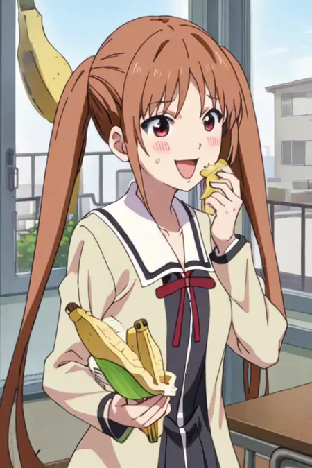 The trigger word is hanabatake_yoshiko_ahogirl, and the recommended tags are best quality, masterpiece, highres, solo, {hanabatake_yoshiko_ahogirl:1.15}, brown_hair, twintails, long_hair, open_mouth, smile, blush, red_eyes.