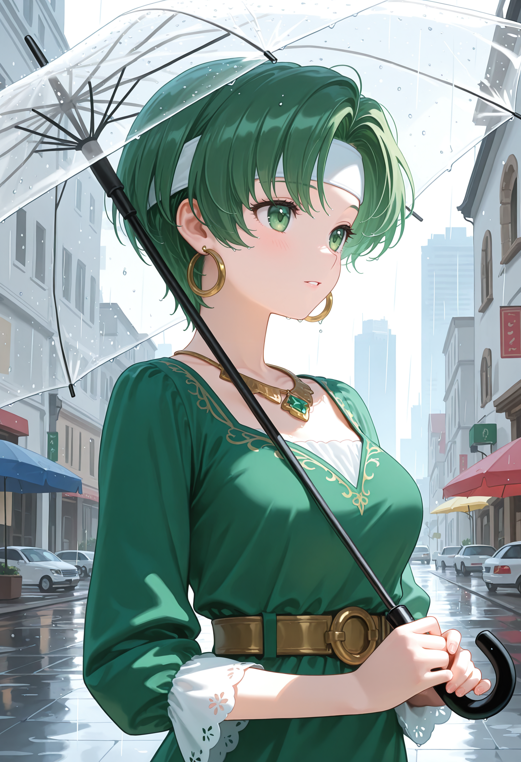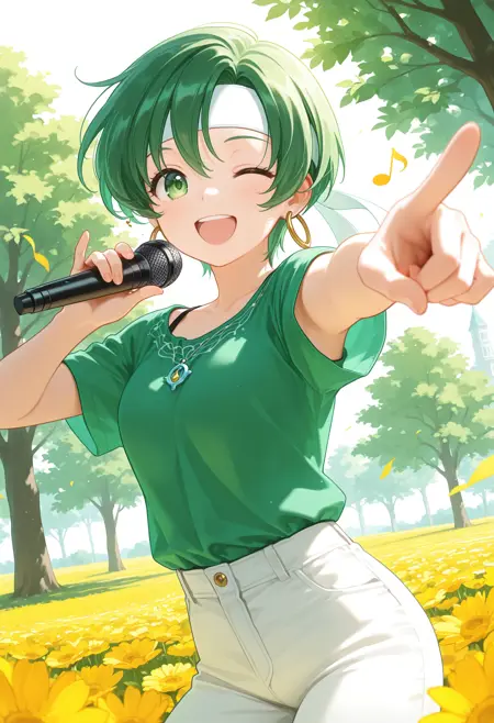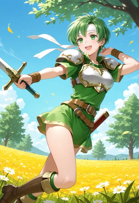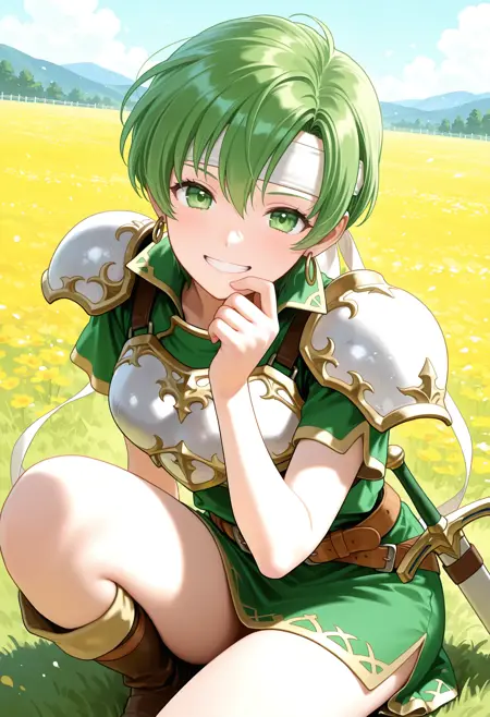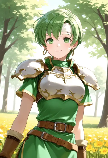 트리거 단어 : fee_(fe),1girl,녹색 머리,짧은 머리,녹색 눈,귀걸이,헤드밴드,녹색 드레스,짧은 소매,