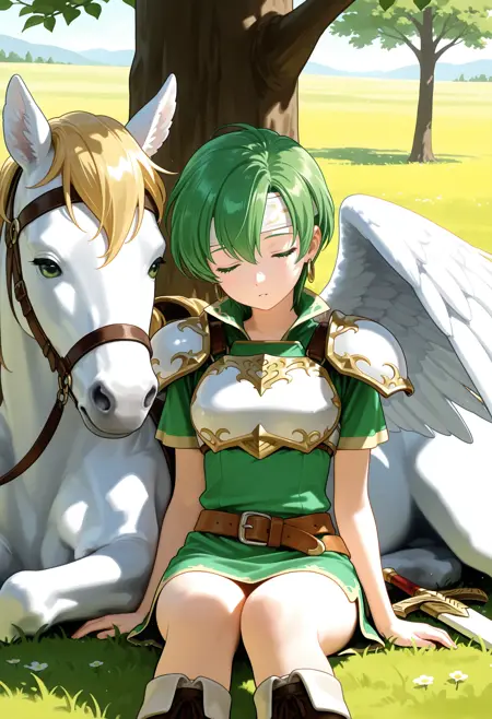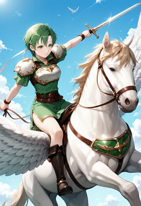 기본 프롬프트 : 갑옷, 어깨 갑옷, 가슴 갑옷, 부츠, 허리띠, 페가수스 나이트 유니폼 (파이어 엠블렘),